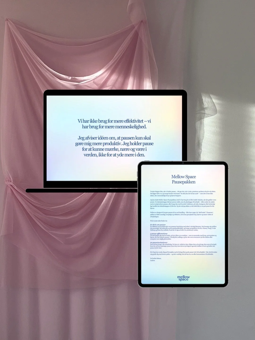 Produkter og gavekort Mellow Space Pausepakken 139,00 kr. Hangout Session for to (gavekort) 2.000,00 kr. Hangout Session for tre (gavekort) 2.600,00 kr. Hangout Session for fire (gavekort) 3.200,00 kr. Gavekort til Mellow Space Fra 250,00 kr. Mellow Box (en oplevelse for to) 575,00 kr. Udsolgt